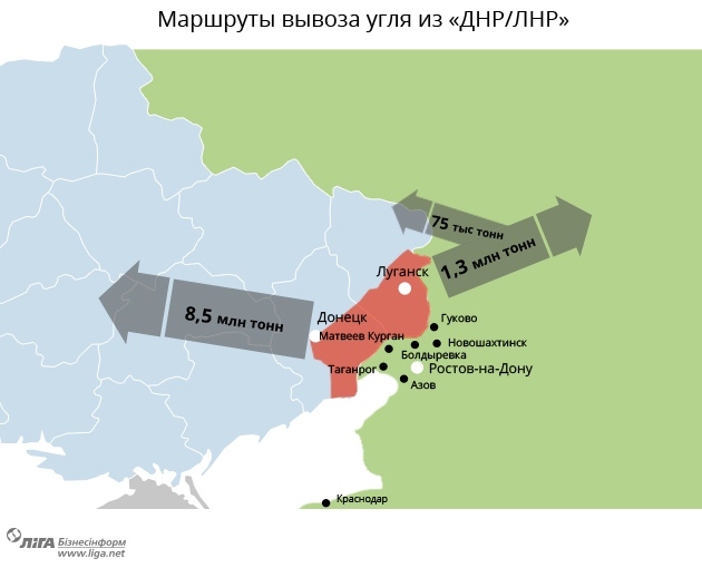 Згідно з даними ФМС РФ, протягом 2015 року різниця між купівлею вугілля на кордоні Росія/Україна (Гуково, Шахти, Новошахтинськ і інші) і ціною для покупця в російських портах та інших пунктах доставки (Брест, порти Туреччини, Ужгород) коливалася від $20 до $55 за тонну.