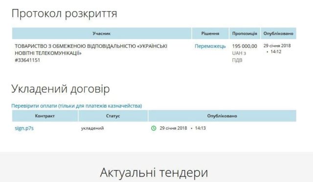 КСП «Інженерні мережі» за переговорною процедурою уклало угоду з ТОВ «Українські новітні телекомунікації» щодо надання послуг вартістю 195 тис. грн.