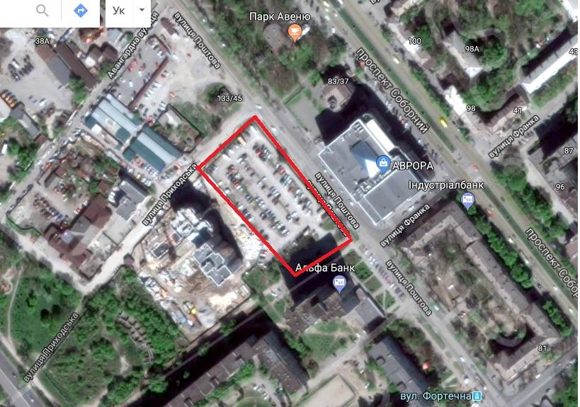 Згідно з проектом рішення виконкому, мова йде про ділянку площею 0,67 гектара, на якій зараз знаходиться майданчик КП «Паркування». Земля знаходиться за ТРЦ «Аврора», між вулицею Поштова і майже готовим комплексом «Олександрівський-1».